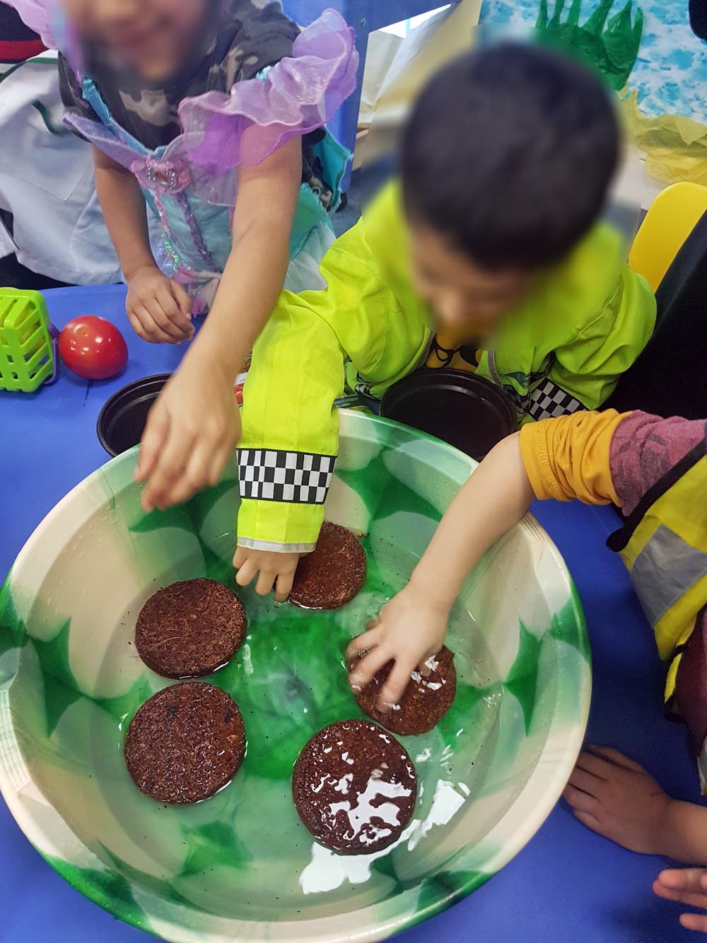 We had great fun 'getting messy' with seed starting plugs. Together, we planted tomato and cress seeds. This was a great way of addressing all seven areas of learning, whilst helping children at Al-Ashraf Nursery explore the world around them.