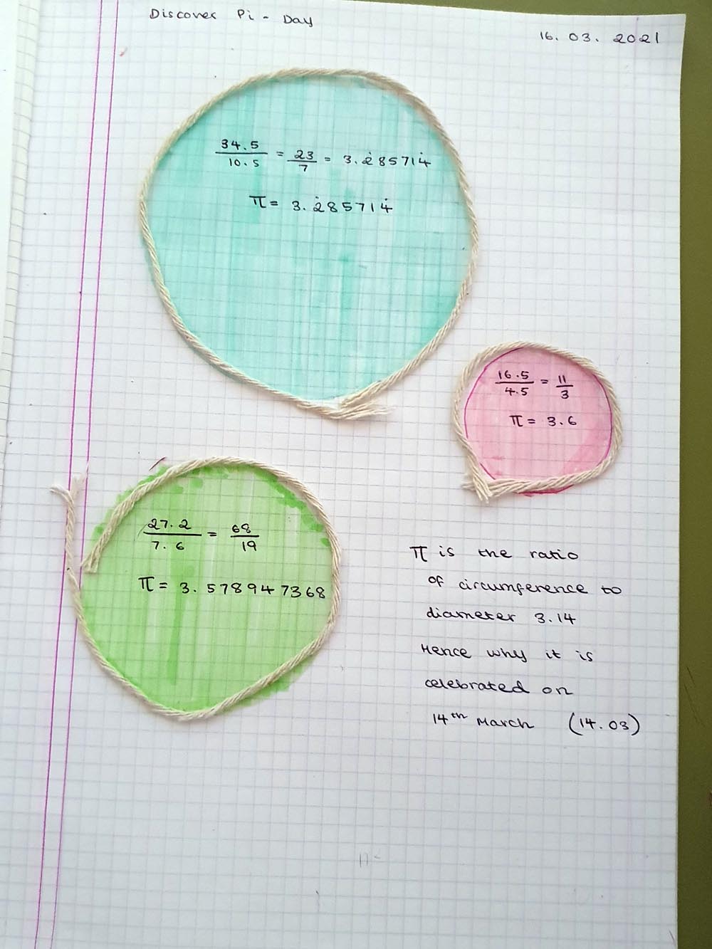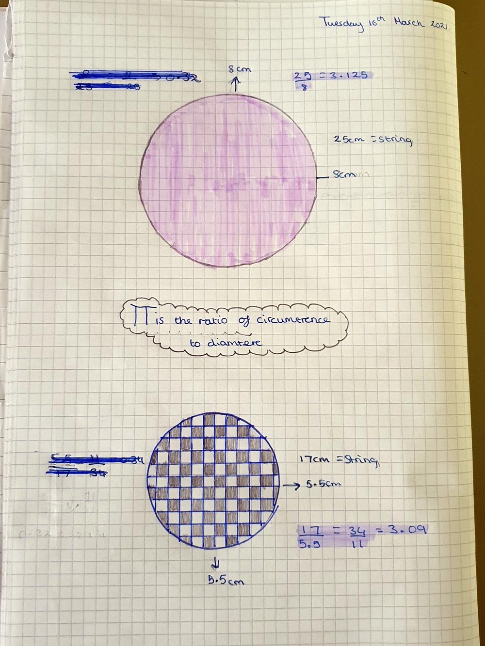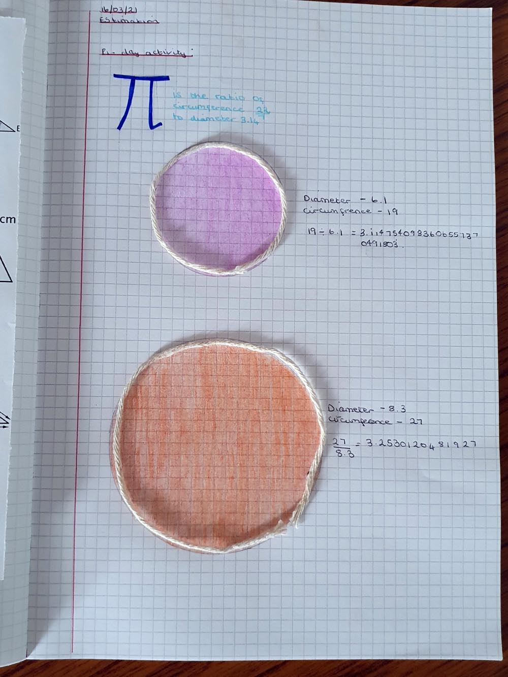 The year 10 pupils investigated the relationship between pi, diameter and circumference of a circle. They concluded that Pi is the ratio of circumference to diameter and is always a constant.