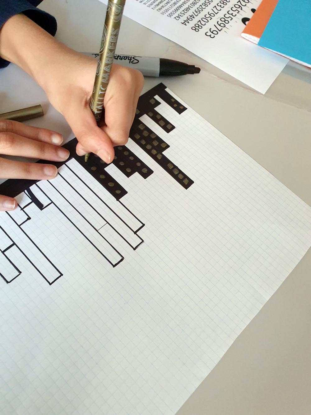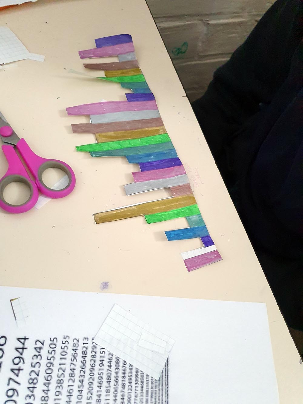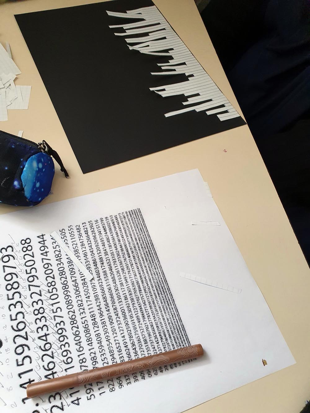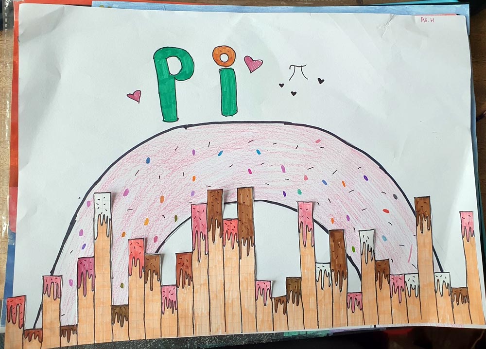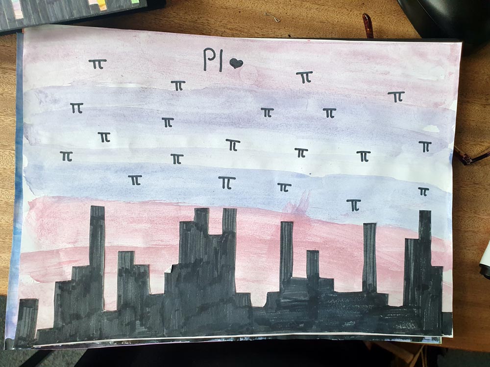 The year 8 pupils created a skyline artwork using the first 20- 25 digits of Pi. They used graph paper to represent the digits of pi as number of storeys in buildings.