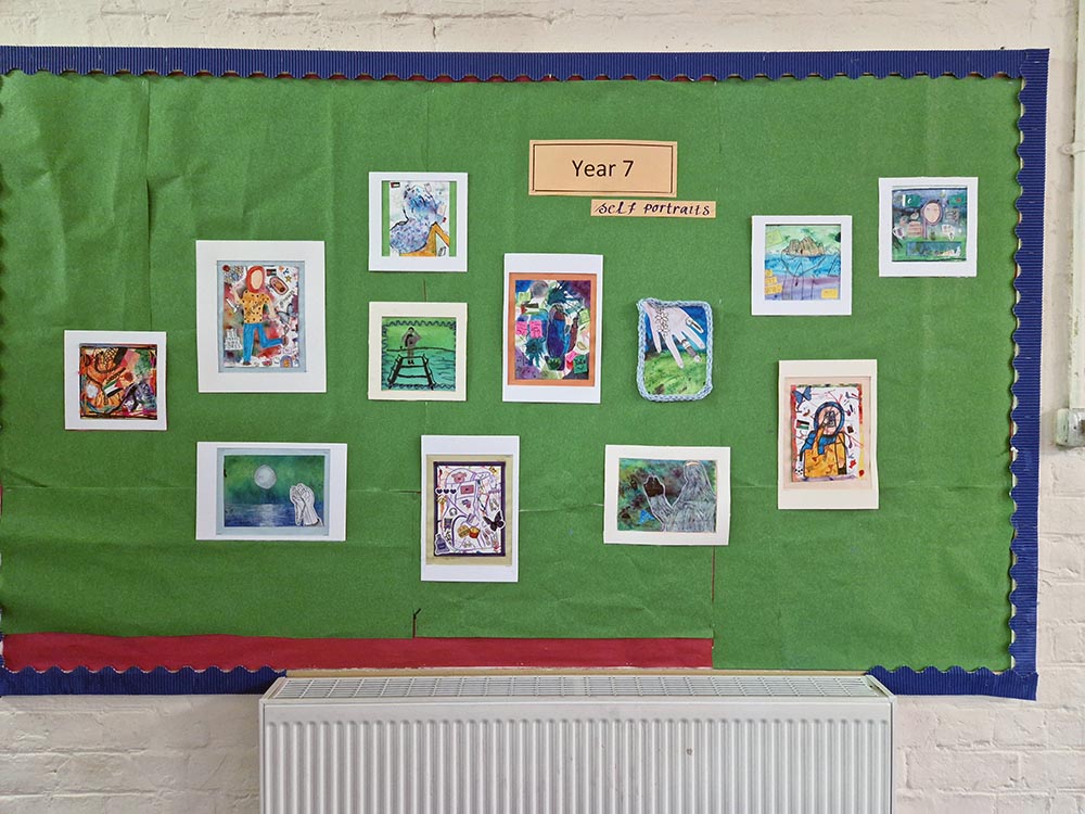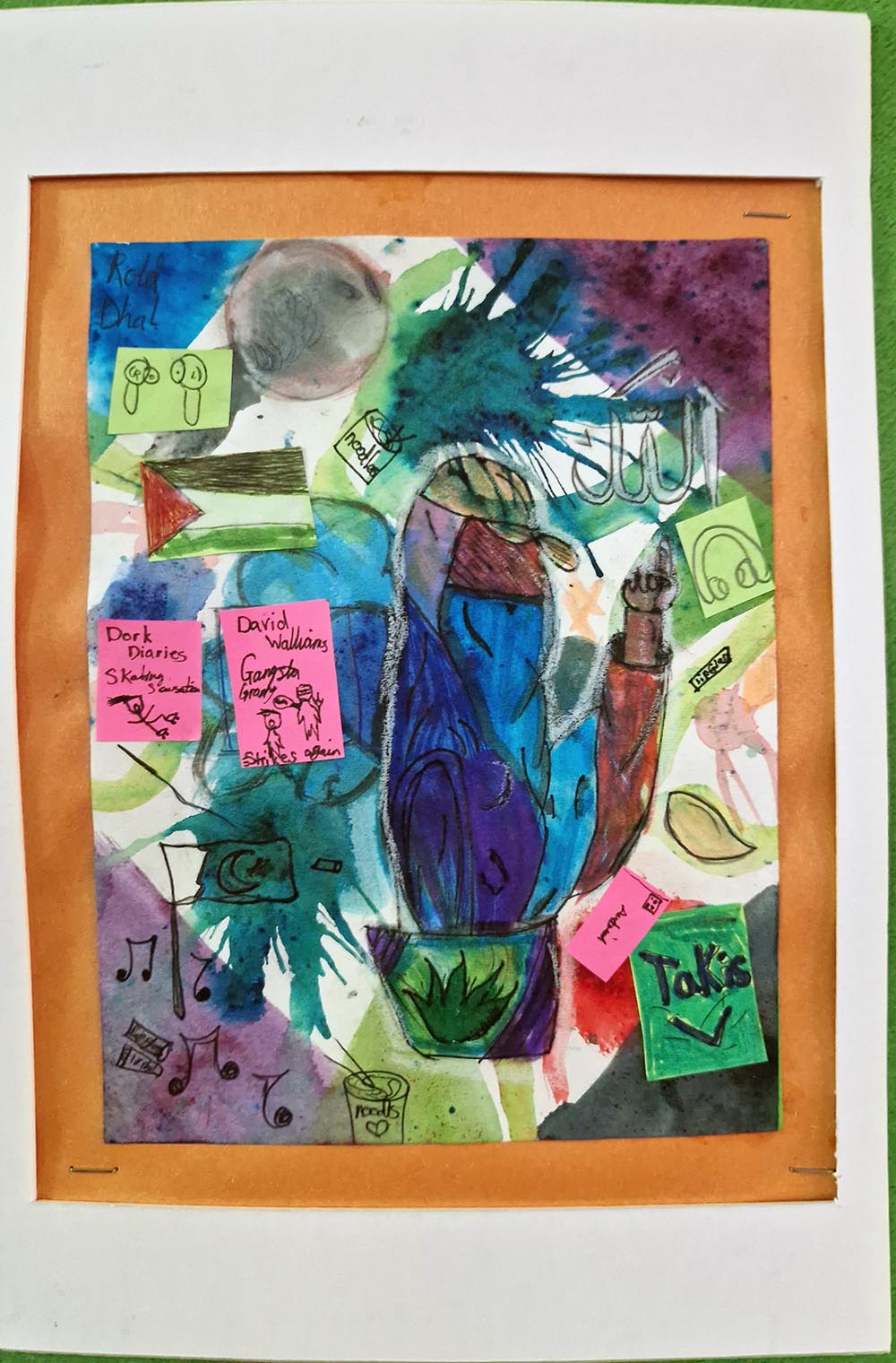 Year 7 expressed themselves using colour and illustration, to visually describe their personalities, interests and hobbies. They used their knowledge of formal elements to create abstract portraits.