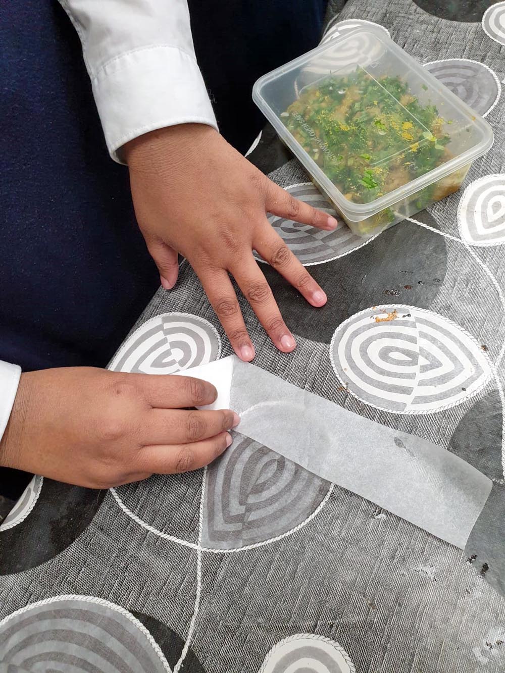 Year 9 making and frying Samoosas and skill of pastry folding.